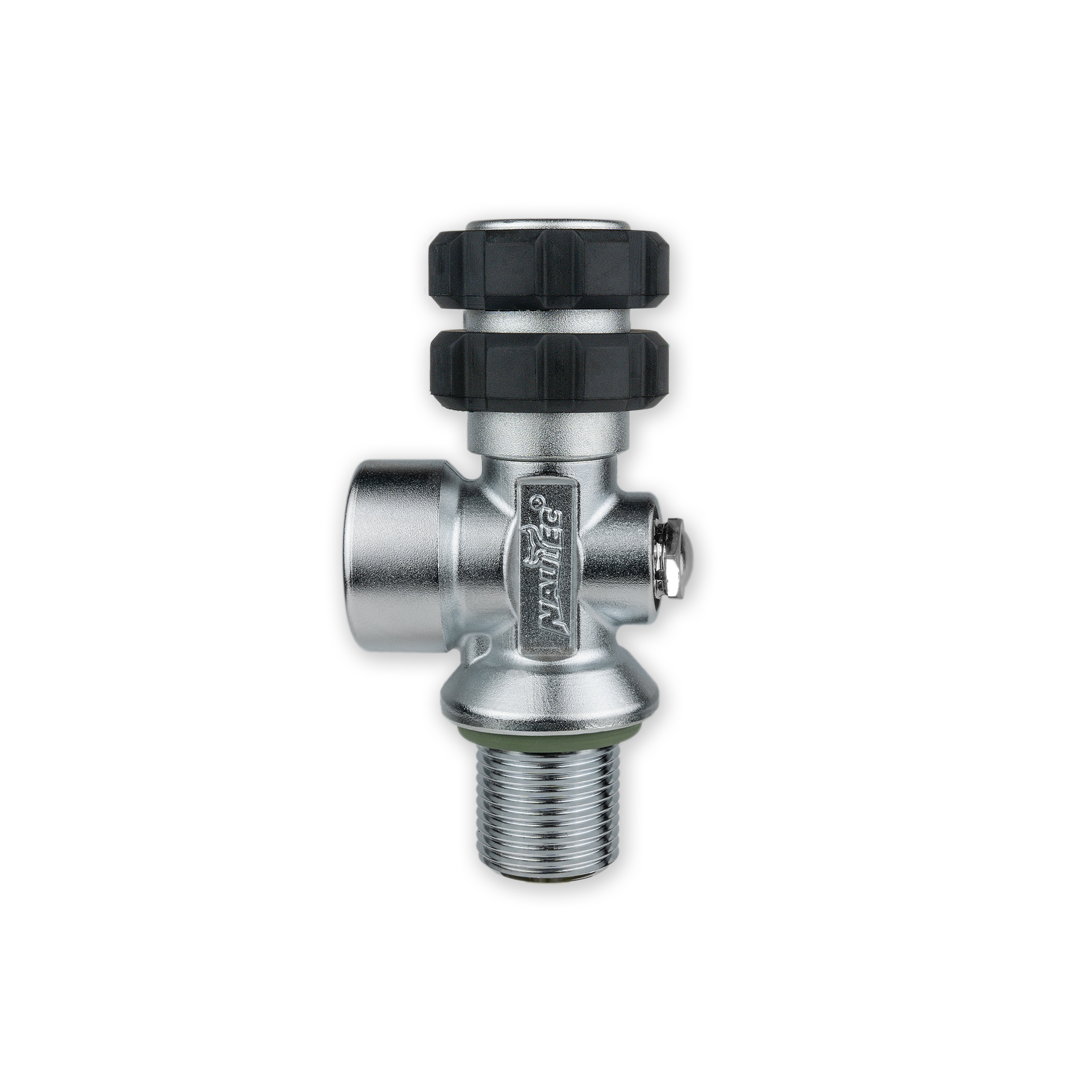 For mono scuba equipment with tank neck thread accordance to US-Standard ¾“ NPSM. Nautec S Valves are standard shut off devices in accordance with DIN EN 12209-2 (G 5/8″), for an operating pressure of 232 bar with vertically arranged shut-off mechanism and outlet. Only 1 first stage can be connected.