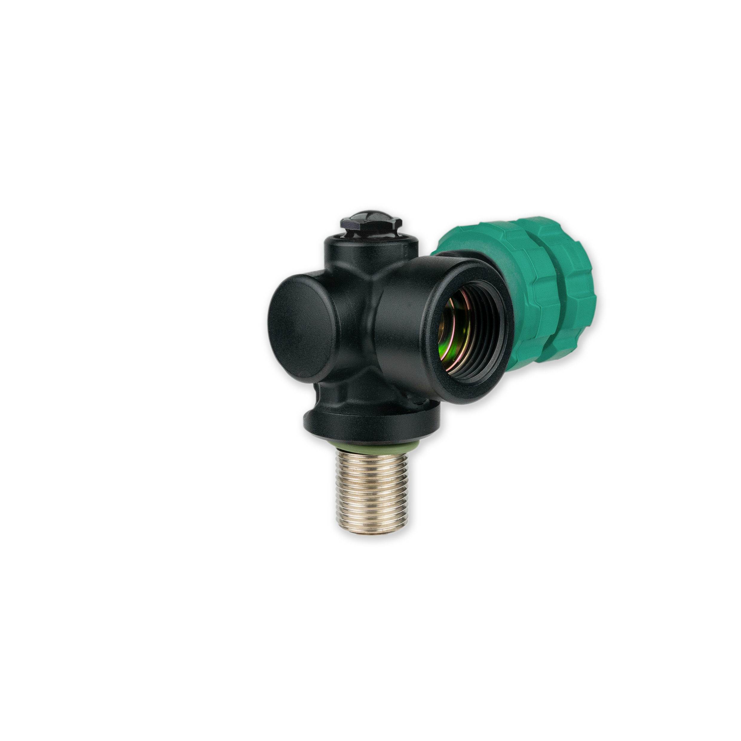 90° Valve / DarkLine / Nitrox 232 / M18 / left / with burst disc
