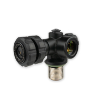 Only 1 first stage can be connected. Equipped with “Full-Metal-Core-Rubber Knobs” (for maximum grip) and safety burst disc, releasing at 300 bar.