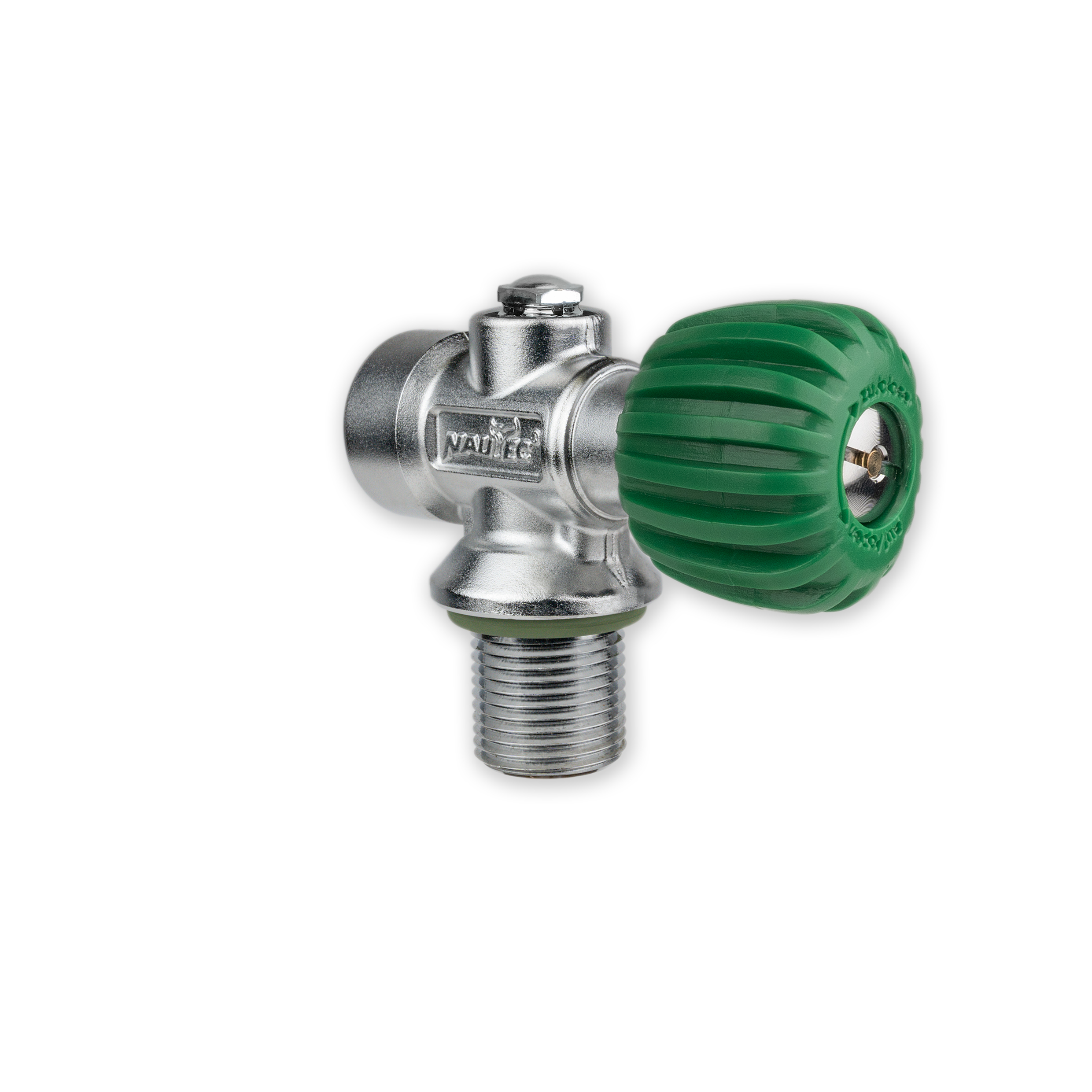 Equipped with a green NAUTEC Oval ABS Handwheel (for maximum grip) and safety burst disc, releasing at 300 bar.