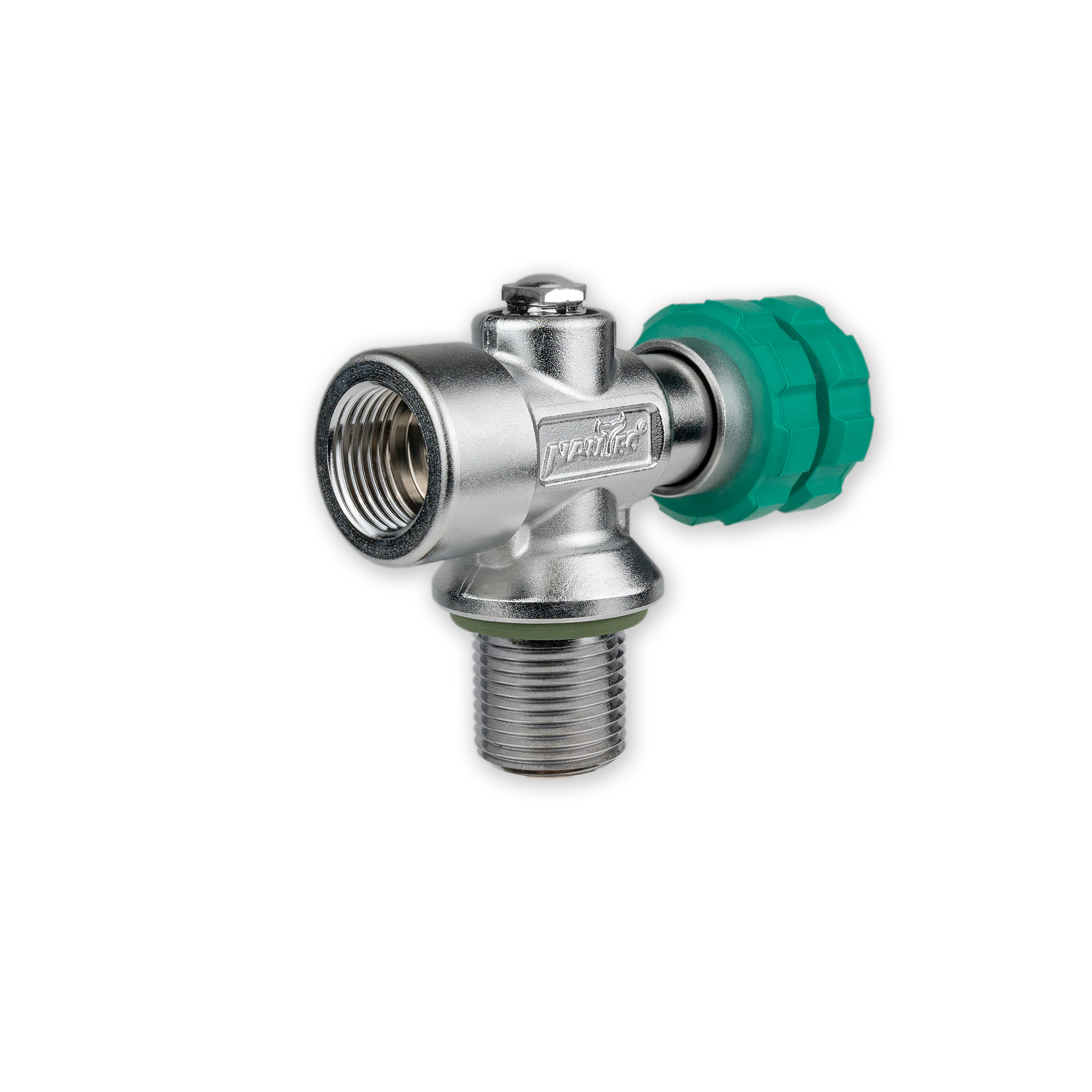 Equipped with a green “Full-Metal-Core-Rubber Knobs” (for maximum grip) and safety burst disc, releasing at 300 bar.