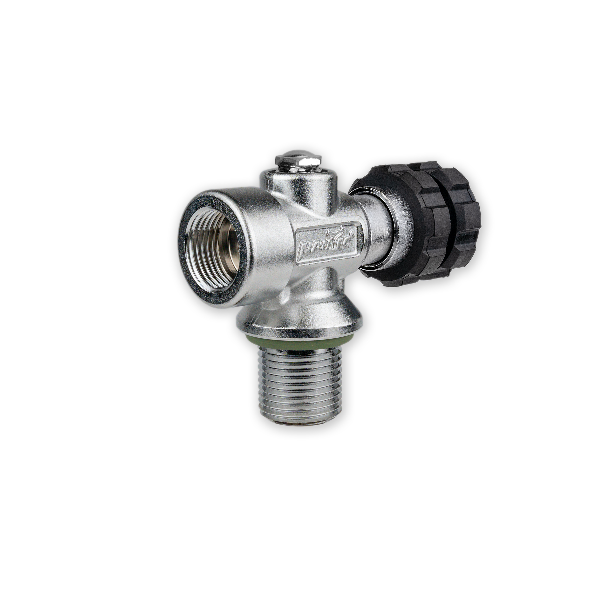 For mono scuba equipment – especially rebreathers – (all tank diameters) with tank neck thread according to US-Standard ¾“ NPSM. Nautec SLS valves are standard shut off devices in accordance to DIN EN 12209 (Pipe G 5/8“), for an max. operating pressure of 232 bar with horizontally arranged shut-off mechanism and outlet. Only 1 first stage can be connected.