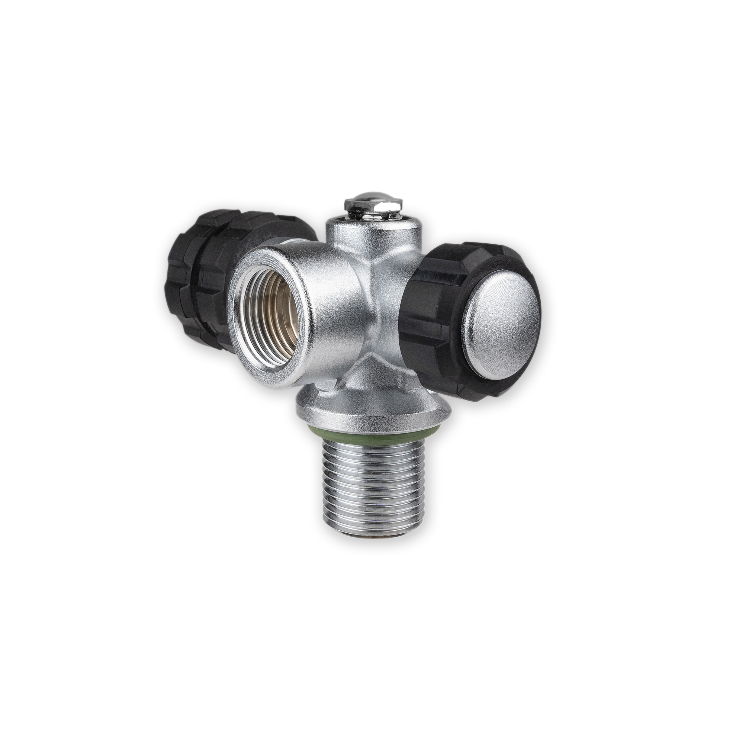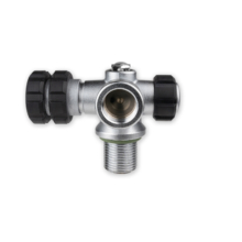 Only 1 first stage can be connected. Equipped with “Full-Metal-Core-Rubber Knobs” (for maximum grip) and safety burst disc, releasing at 300 bar.