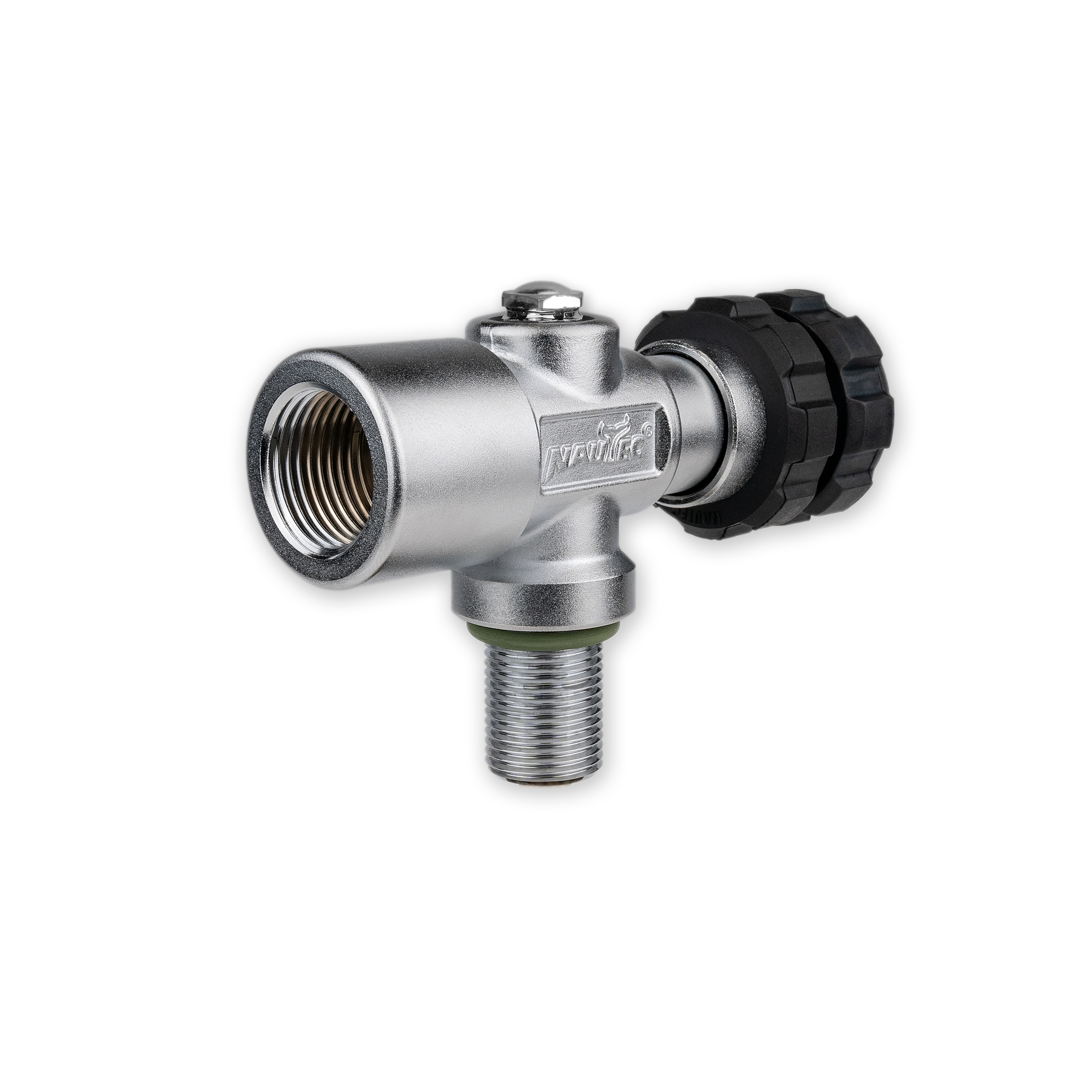 Equipped with a NAUTEC “Full-Metal-Core-Double-Wheel-Rubber-Knob” and safety burst disc, releasing at 450 bar.