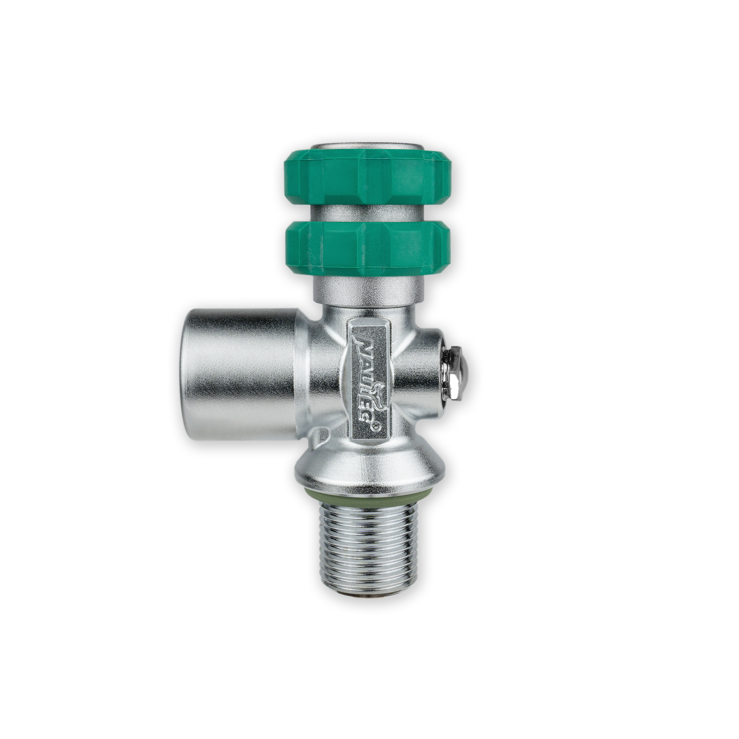 For mono scuba equipment with tank neck thread accordance to US-Standard ¾“ NPSM. Nautec S Valves are standard shut off devices in accordance with DIN EN 12209-2 (G 5/8″), for an operating pressure of 300 bar with vertically arranged shut-off mechanism and outlet. Only 1 first stage can be connected.