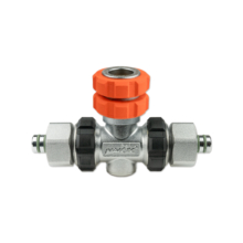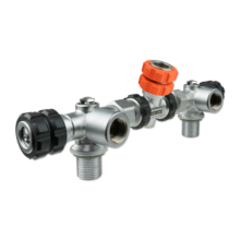 All valve outlets can be shut off separately, the gas flow can be safely turned off using the Nautec TEC manifold between two flanges. Located opposite the hand wheel, is a connection port for a stub pressure gauge or a dive computer transmitter with 7/16″ connection thread.